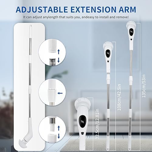 【Adjustable to make cleaning easier】Powerful power helps to clean dirt faster and easier than manual cleaning. The bristles of the electric bathroom scrubber tile scrubber will not scratch your bathtub. The bristles are of good quality and will not deform. Say goodbye to stubborn stains and cut scrubbing time by a quarter. Powerful motor ensures fast and thorough cleaning.