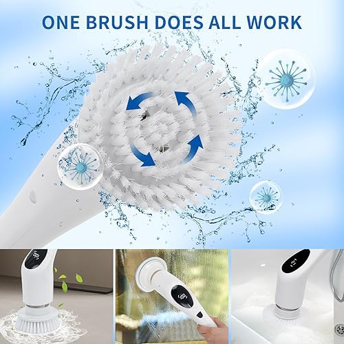 【Moisture and Water Resistant】Cordless rotary scrubber for bathroom is designed for your safety. Highly sealed design and splash-proof for use in wet environments. Greatly meets the cleaning needs in different scenarios. High-speed pressure-bearing design makes it continue to spin when you press the brush head hard enough to clean stubborn stains.
