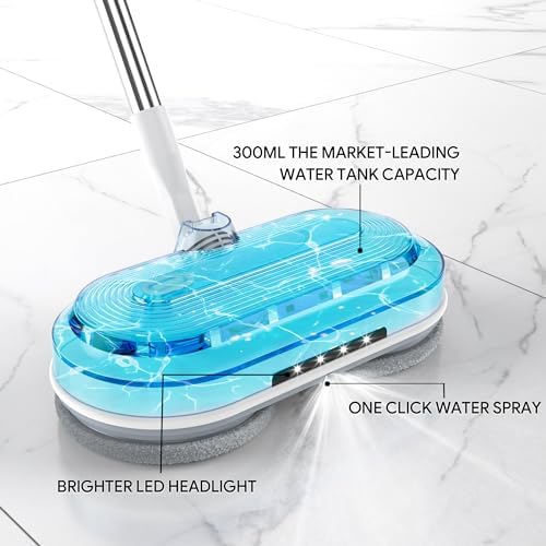 【𝐄𝐟𝐟𝐨𝐫𝐭𝐥𝐞𝐬𝐬 𝐂𝐥𝐞𝐚𝐧𝐢𝐧𝐠 𝐄𝐧𝐝𝐮𝐫𝐚𝐧𝐜𝐞】: Experience a solid 50-minute cleaning performance with our electric mop. The powerful 2000mAh battery charges rapidly in just 2.5-3 hours, eliminating the hassle of frequent recharging. Additionally, mop integrates a convenient 300ml water tank sprayer, ensuring targeted and quick moisture replenishment. Which is essential for busy households, providing uninterrupted cleaning and efficient hydration for your cleaning tasks.