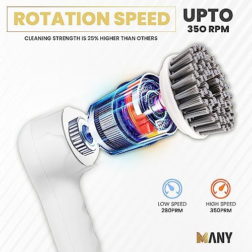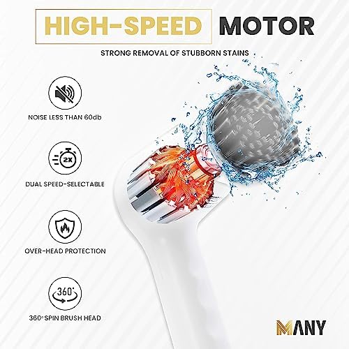 [ Cordless & Lightweight ] – This electric cleaning brush scrubber is easy to use anywhere. Use the power scrubber anywhere in your home without worrying about tangled cords or heavy equipment. You can use the electric scrubber for bathroom needs or as an electric shower scrubber, or even as a kitchen scrub brush by using one of the attachments as a scrub brush for cleaning dishes.