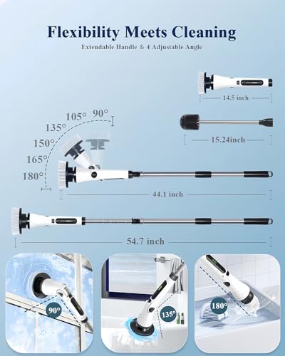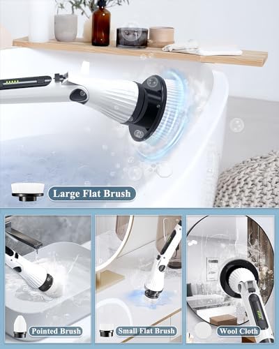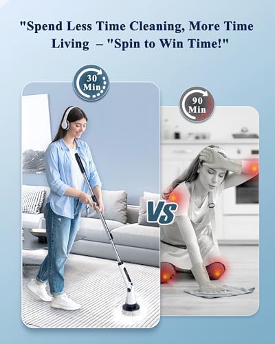 【Your Shortcut to a Cleaner Home】Life’s too short for strenuous cleaning sessions. Enter the electric cleaning brush – a game-changing tool that takes the elbow grease out of your cleaning routine. With its advanced spin technology and 8 brush head attachments, you can effortlessly tackle shower bathroom, bath tubs, tile floor, grout, toilet, carpets, car wheel and kitchen surfaces, etc. Let the electric spin scrubber do the hard work while you enjoy a spotless home in no time.