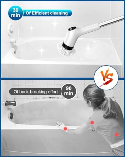 [ Premium Quality & Thoughtful Gift ]: More than a cleaning tool, our electric bathroom brush makes for an excellent gift for friends, parents, and spouses. Committed to superior customer experience and product quality, we offer a 30-day worry-free money-back guarantee and a 1-year quality guarantee. Ensure optimal performance by fully charging before use.