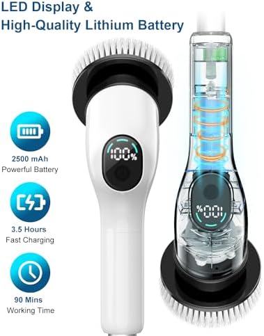 [ Stress-Free Cleaning Experience ]: Lightweight yet powerful, our electric spin brush transforms your cleaning routine by eliminating the need to kneel or bend over. Ideal for individuals with knee, back pain, or arthritis, it enhances your quality of life and creates a more comfortable home environment.
