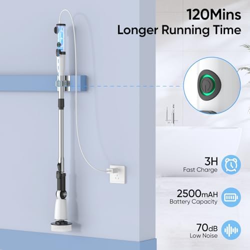 𝐋𝐨𝐧𝐠𝐞𝐫 𝐖𝐨𝐫𝐤 𝐓𝐢𝐦𝐞 & 𝐈𝐏𝐗𝟕 𝐖𝐚𝐭𝐞𝐫𝐩𝐫𝐨𝐨𝐟🛁:The power bathroom scrubber can run continuously for up to 120 minutes after a single quick charge. This shower spin scrubber is IPX7 waterproof, you can wash the electric scrubber directly into the faucet without worrying about damaging the product. 🎁At the same time, it can be a gift for your friends, wife, parents, and everyone you love.