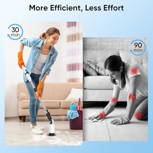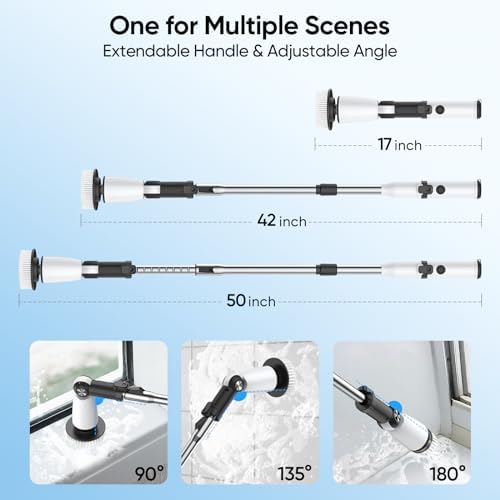 𝐀𝐝𝐣𝐮𝐬𝐭𝐚𝐛𝐥𝐞 𝐀𝐧𝐠𝐥𝐞 & 𝐄𝐱𝐭𝐞𝐧𝐬𝐢𝐨𝐧 𝐋𝐞𝐧𝐠𝐭𝐡💦: Our electric scrubber for cleaning are adjustable in three sizes from 15 to 50 inches, so you can match different handles to different cleaning needs, and say goodbye to back pain and knee pain and other discomfort caused by cleaning. The three adjustable brush head angles reach all the nooks and crannies you need to be clean, so you never miss a spot.
