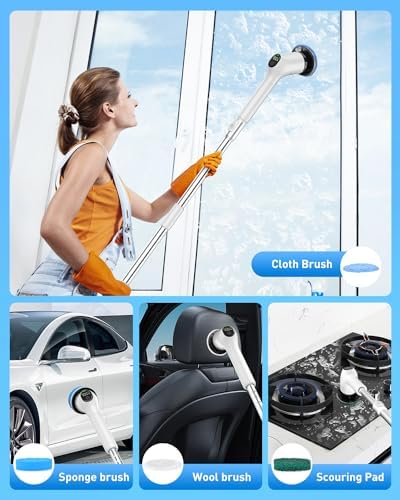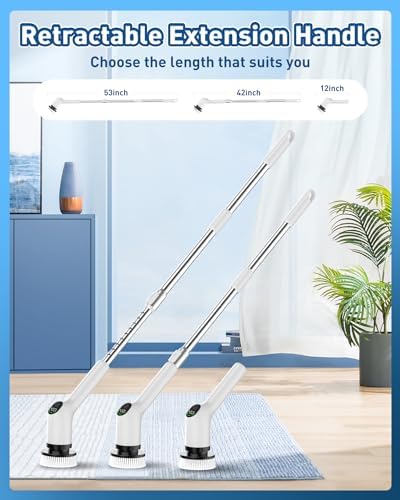 👨🦽[Adjustable Handle for Effortless Cleaning] Bending over to clean can be torture for those with back or knee problems. The handle of the shower electric scrubber extends to 53 inch, eliminating the need to bend or kneel. The retractable feature of an extension pole is a wonderful thing because it eliminates tedious installation steps. Just grip it, and it will do all the work for you