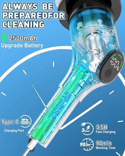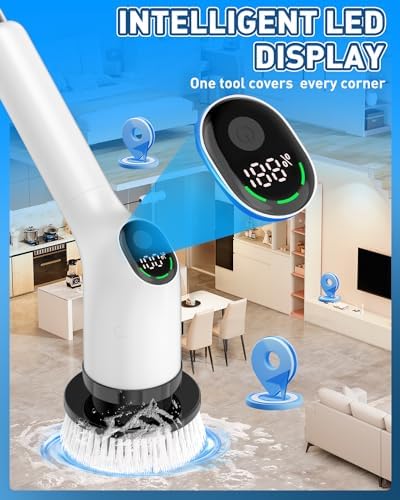 ⚡[Fast Charging, Efficient Cleaning] Electric Bathroom Brush charges quickly and can work continuously for 90 minutes, meeting the deep cleaning needs of 2-3 bathrooms. The digital display screen shows the remaining power and allows easy speed selection, adjust cleaning mode at any time. The included hook and storage bag enhance convenience and extend the lifespan.