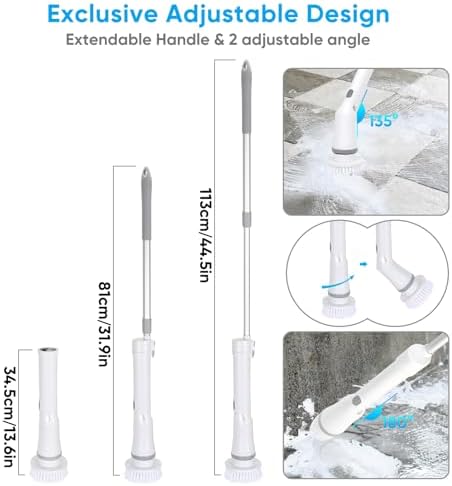 This lightweight and powerful cordless spin scrubber makes cleaning a breeze. No more bending or kneeling, saving you time and effort. Ideal for those with back pain, knee pain or those who don’t like long exhausting cleanings. Great gift for someone who has mobility issues or just doesn’t have time to spend cleaning by hand. Also a perfect choice to let your mom, wife, grandma enjoy the convenience brought by technology.