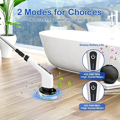 【High-power Power Scrubber】The Bamifun Electric scrubber brush is a cordless and versatile cleaning tool that is specifically designed for use throughout your home. It is powered by a large-capacity 2500 mAh battery with high torque, offering two rotation speeds to choose from 300 RPM and 400 RPM. When combined with a cleaning agent, this scrubber can quickly eliminate stubborn stains, leaving your tile floors looking brand new.