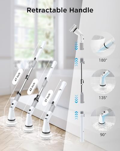🍀Extend Your Reach with Ease: Conquer hard-to-reach areas effortlessly with the included extension arm. The electric cleaning brush for bathroom empowers you to clean with precision and convenience, making every cleaning session a success.