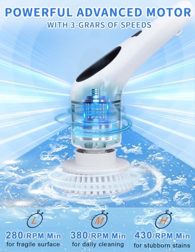 【IPX4 WATERPROOF】The bathroom scrubber electric features IPX4 waterproof rating, which ensures the safely when use in a humid environment or by dipping the brush head in water for cleaning. Notice that do not completely submerge the power scrubbers for cleaning head in water for safety.