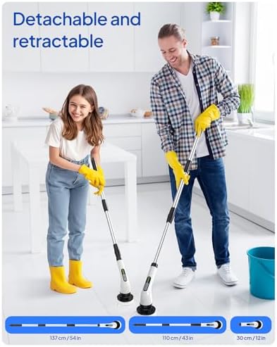 Electric Cordless Design: The Electric Spin Scrubber is a revolutionary cleaning tool, specially designed for the modern household. Combining electric power with cordless convenience, it offers an unmatched cleaning experience. Forget the old way of cleaning with trailing wires and being tethered to sockets. This scrubber, with its powerful motor, easily tackles all your cleaning challenges.
