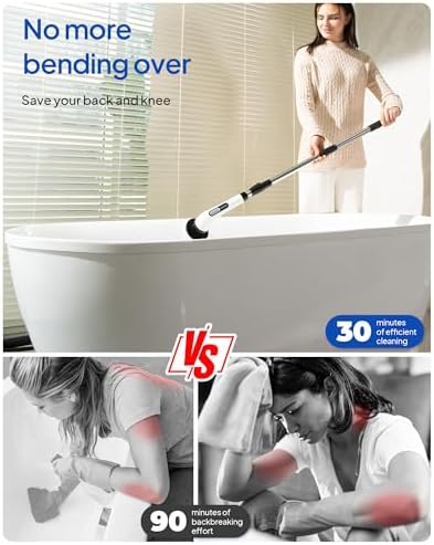 Powerful Cleaning Ability: The Electric Spin Scrubber boasts an exceptional cleaning power, effectively removing stubborn stains and dirt. Its efficient cleaning performance significantly reduces your cleaning time and effort, ensuring a cleaner and more comfortable home environment.