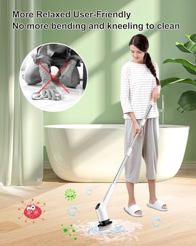 [Enhanced Reach & Comfort] Electric Cleaning Brush is equipped with a 53-inch removable and adjustable extension pole, providing superior reach compared to competitors’ models with a standard length of 46 inches. This extended reach allows you to adjust the length of the spin scrubber from 12 inches to 53 inches, ensuring you can easily reach high or low areas without straining your back or knees. Say goodbye to bending or kneeling to scrub tubs and floors.
