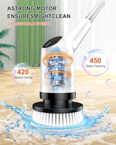 [Durable Construction] Crafted from high-quality, durable PP material, our electric bathroom scrubber is built to last. Its sturdy construction ensures easy removal of stubborn stains without scratching surfaces like bathtubs, tiles, or glass. The IPX7 waterproof rating guarantees safe daily use and long-term reliability.