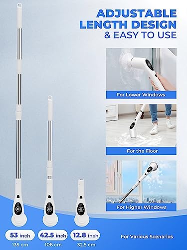 【2 In 1 Long & Short Handle, Save Your Waist】 Short handle spin scrubber is convenient for cleaning sinks, counter tops, etc. After installing the included retractable extension rod, you can adjust the length of the scrubber, which helps you easily clean hard-to-reach areas. No more bending over or kneeling to scrub bathtubs and floors, protecting your back and knees.