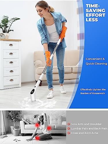 【Easy to Use, Great Gift】Cordless scrubber, easy to move and carry, cleaning range is not limited by the socket. Simple to operate electric scrubber greatly relieves the burden of daily house cleaning and is ideal for housewives/househusbands, busy working people, arthritis sufferers, the elderly, renters, etc.