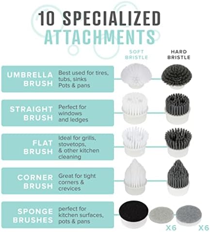 Nab Nooks & Crannies – Use your rotating cleaning brush’s 18 scrubbers with 3 levels of abrasiveness for any dirty surfaces around your house, from tight corners of crusty ovens to big, muddy tires.