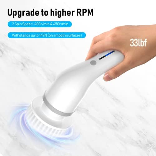 【2 Speeds for Deep Cleaning】①Low speed:400r/Min; ②High speed:450r/Min, more powerful cleaning power than other low speed cleaning brushes and more time saving! To remove stubborn stains, please use together with detergent.