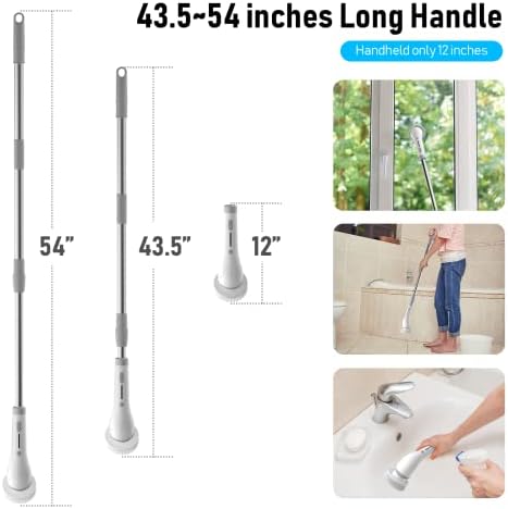 【Adjustable Handle Length】Choice of long and short handles. The short handle is only 12 inches, which is suitable for close-distance cleaning, such as stove, sink, table top, etc. The long handle can be extended from 43-52 inches, suitable for long-distance cleaning, such as bathtubs, floors, ceilings, etc.