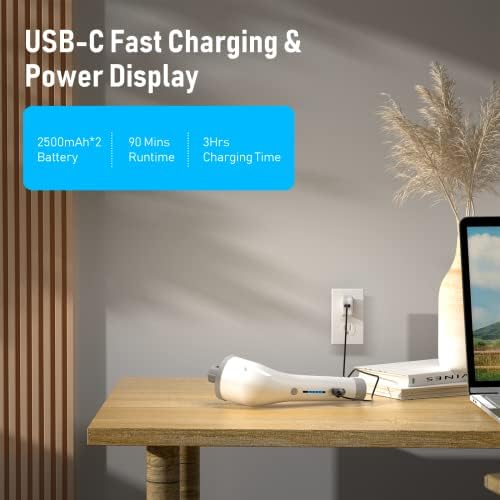 【Power display & IPX4 Waterproof】It takes about 3 hours to fully charge and can be used continuously for 90 minutes. The real-time power display allows you to keep track of the power situation at any time. In addition, it has good waterproof performance and can work under the tap.