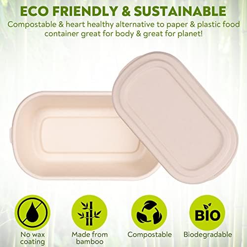 SINGLE COMPARTMENT 37OZ LARGE & HEAVY DUTY DISPOSABLE LUNCH BOX: Our eco friendly bowls with lids are perfect to use as lunch box, to go containers, food storage containers etc. This large, heavy duty and exceptionally deep bamboo meal prep containers are oil, liquid and cut resistant and it can hold 37oz food. Enjoy homemade lunch at work or on the go or use it as take out food container at restaurants or food trucks without worrying about the bowls being soggy or leaky.