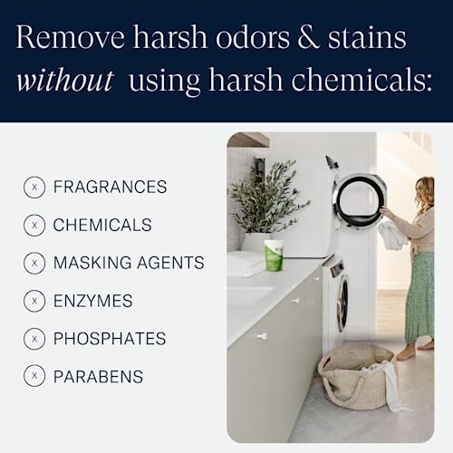 REMOVE ODORS: Our technology safely removes odors without chemicals, fillers, additives, or masking agents. Our laundry detergent powder fights stains without using artificial brighteners: no bleach.