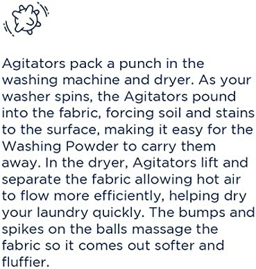 FASTER DRY: In the dryer, Agitators lift and separate the fabric allowing hot air to flow more efficiently, helping dry your laundry quickly. The bumps and spikes on the balls massage the fabric so it comes out softer and fluffier.