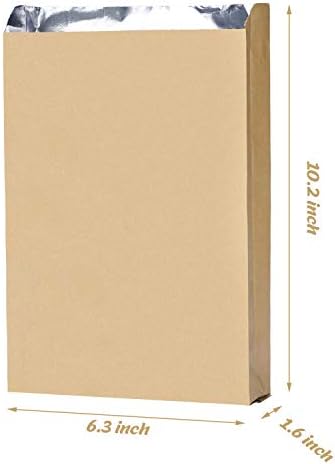 EUSOAR Disposable Food Storage Bags, 100pcs 10.2″ x 6.2″ x 1.5″Kraft Paper Bakery Bags, Lunch Bags, Aluminum Foil Greaseproof Burger Bags, BBQ Bags, Cookie Bags