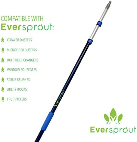 SAVE TIME, SKIP THE LADDER – REACH UP TO 18-20 FEET WHEN STANDING – Included is Eversprout Extension Pole (4.5 to 12 ft) and Cobweb Duster (9” x 5” x 5”). with cobweb duster head and telescoping pole duster that had webster spider web remover