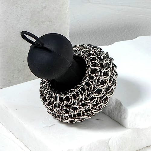 Ewixni Cast Iron Scrubber,Cast Iron Cleaner,Chainmail Scrubber for Cast Iron Pans(Black)