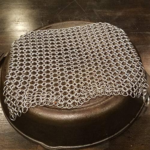 RUGGED AND DURABLE: Premium food grade stainless steel and quality craftsmanship means your chainmail scrubber will effortlessly remove food from your pans. Also works great on cast iron woks, griddles, dutch ovens, tortilla press, and grills. Pair with a scrubber brush, plastic pan scrapers, and cast iron conditioning oil, and you’ll have perfectly maintained cookware. Or, add a heatproof silicone or leather handle cover and you’re ready for anything.