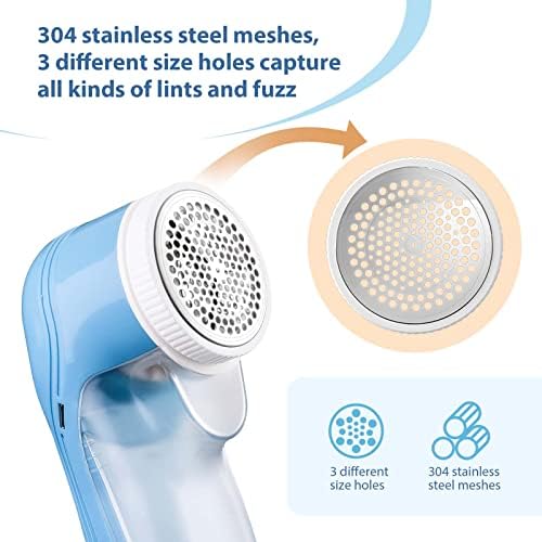 🧣【No Damage To Fabric】Our fuzz remover has a built-in safety lock that protects your clothing from damage by automatically disconnecting the power and stopping the blades from turning when the protective cover is loosened. The stainless steel mesh cover with mesh of different sizes to handle almost all sizes of lint. Remove fuzz without damaging the clothes and no hurt to the surface of the fabric.