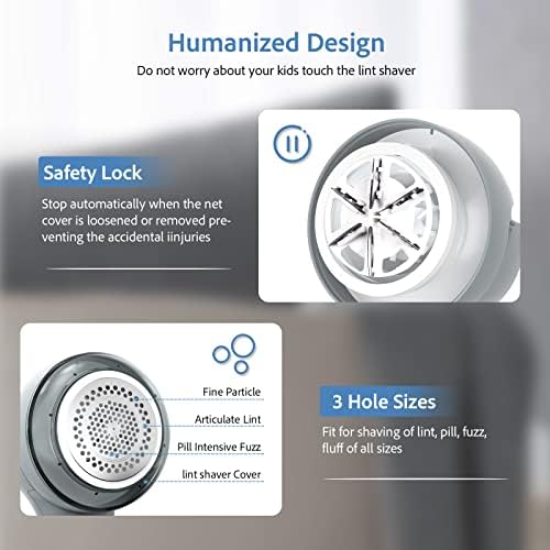 【Uprade Safety Lock】This fabric shaver for clothes equipped with a standard safety lock, which will stop working automatically at once when the storage cover is open or loose, and it will start working again after the cover is tightened. This humanized design prevents the finger and fabric from being cut accidentally.