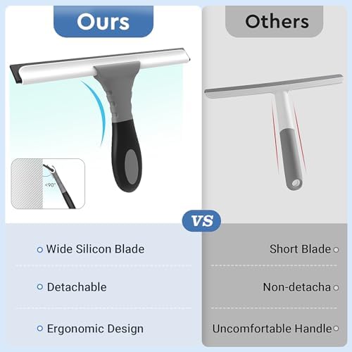[Detachable & Portable] The silicon blade of squeegee is detachable. If you want to store it and put it into small box, desk or bags, you can push the buckle of handle and take blade down. The lightweight design makes it easy to use and reduces your arms’ fatigue.