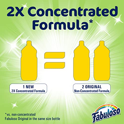 Fabuloso® Multi-Purpose Cleaner, 2X Concentrated Formula, Refreshing Lemon Scent Fabuloso® Multi-Purpose Cleaner, 2X Concentrated Formula in Refreshing Lemon Scent transforms your home with a fresh scent that lasts. Bring the fragrance of lavender indoors, and experience a warm, joyful feeling your friends and family will love. Fabuloso®’s 2X Concentrated Formula now provides 2X more active ingredients compared to non-concentrated Fabuloso Original, giving you 2X the dosage in the same bottle. Every colorful pour from the easy-pour bottle delivers a long-lasting, unmistakable freshness and leaves your home bright and clean. Use Fabuloso® Multi-Purpose Cleaner, on sinks, toilets, tubs, showers, kitchen and bathroom floors, sealed wood surfaces, appliances, counters, windows, mirrors, walls, doorknobs and furniture, and fill every room in your home with joy.