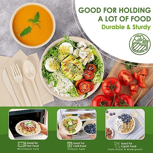 FEHHTO Disposable Paper Plates Set 300PCS Compostable Sugarcane Plates, Bowls, Heavy-duty Utensil, Biodegradable Napkins, Eco-friendly Dinnerware Set for Party Camping 50 People