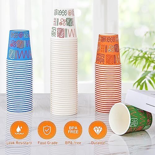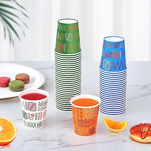 UNIQUE DESIGN: These colorful 5 oz paper cups have a unique pattern design,4 different colors come in the package. They are very great for homes, parties, companies, and other occasions.