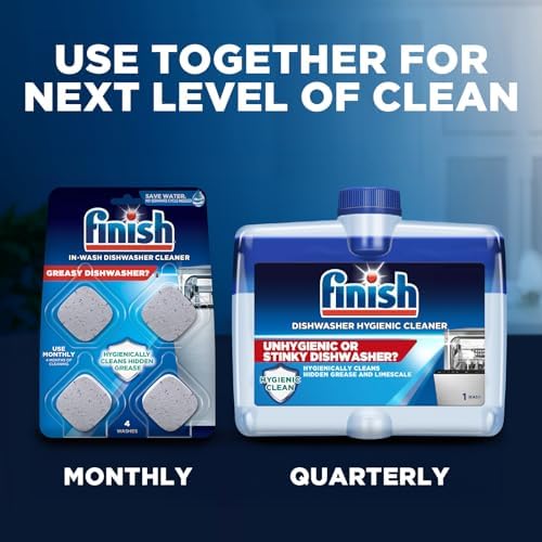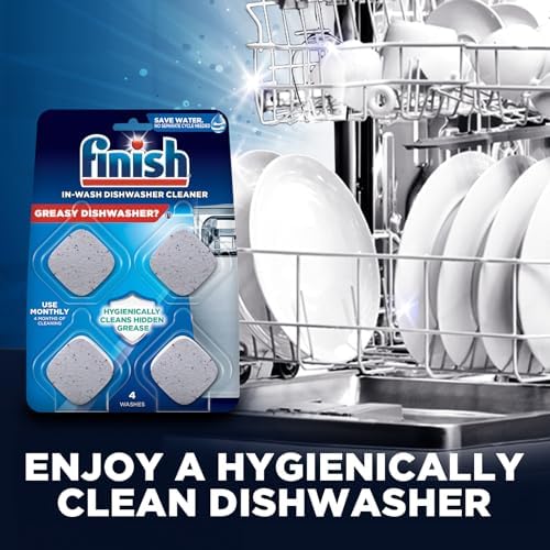 Worry no more about your greasy dishwasher with this In-Wash Dishwasher Cleaner from Finish. Finish Dishwasher Cleaner works by safely and effectively breaking down and removing mineral build-up inside your dishwashing machine, including hard-to-reach parts like the heating element, filter and sprayer arms, leaving everything in shining condition. Finish Dishwasher cleaner extensively cleans any mold, mildew and hard-water stains to keep your dishes sparkly clean cycle after cycle. You can use them in a regular wash cycle, making these dishwashing tabs easy and convenient. Simply place at the bottom of your dishwasher. It really powers away hidden grease and grime while freshening your machine.