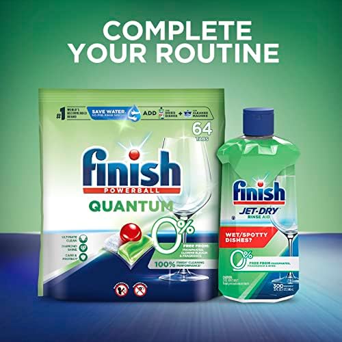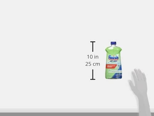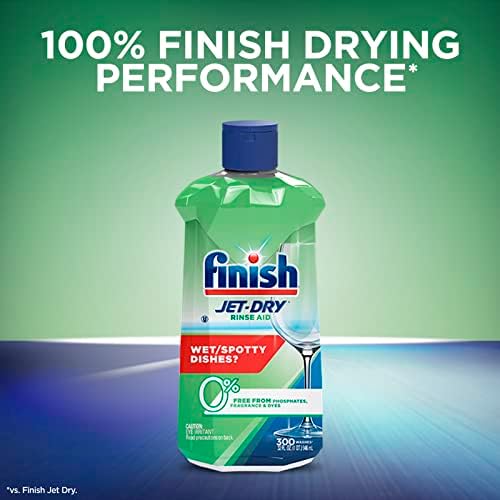 Finish Jet-Dry Liquid Green 0% dries and prevents spots – for better results than detergent alone! For optimal results, use with your detergents. Experience shiny dishes and spot and film protection (vs. dishwasher detergent alone) with our Finish Jet Dry 0% Dishwasher Rinse Aid. It works with your dishwashing detergent to rinse away stubborn leftover food, spots, and film for sparkling dishes, glasses and utensils. It’s easy to use as well! Simply fill your rinse aid dispenser with Finish Jet-Dry 0% Rinse Aid and it will be automatically released in the rinse cycle every time your dishwasher runs.