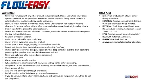 POUR INTO STANDING WATER: Formulated to be activated by standing water. No need to remove water first. Simply pour it into the clog and let it go to work. Eliminates the need to bail the sink before using. Simply pour into the standing water and let Flow-Easy go to work as it powers through clogs that other drain cleaners can’t.