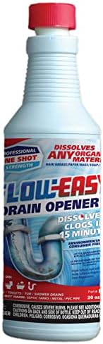 Flow easy, 20 OZ, Organic Drain Cleaner, Organic Digester, Dissolves Grease, Hair, Organic Matter, Sludge, Soap & Paper, Environmentally Responsible, Removes Lime Scale & Rust Deposits, Safe For Septic Tanks & Pipes.