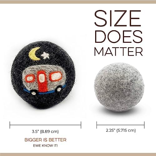 HANDMADE: These plus size extra-large dryer balls are 50% larger than the competition, last longer and won’t fall apart. Embroidered and handmade (not glued in a factory) with 100% premium New Zealand Wool by women of underprivileged communities in ethical working conditions, earning a fair wage, using pain free and cruelty free shearing practices