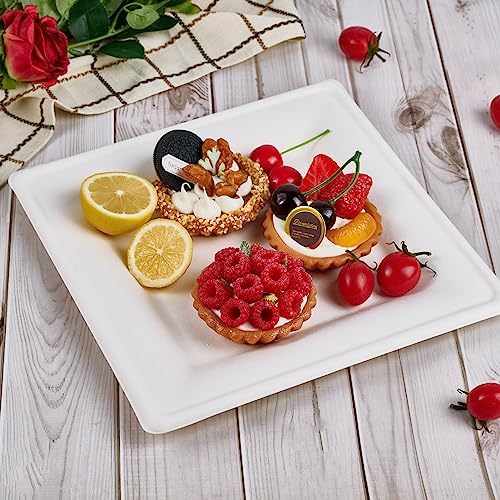 【100 COUNT 10 INCH PLATES】 Measuring 10 inches each, these simple and atmospheric square disposable plates can be matched with any food, perfect for serving sandwiches, salads, baked beans, desserts, and more.