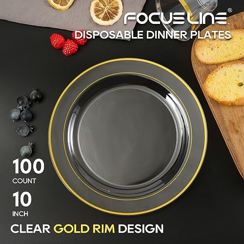 ELEGANT & STYLISH- These 10 inch clear dinner plates have a slight depth and are designed with beautiful and elegant gold rim. The crystal clear construction is designed to better showcase a variety of colorful dishes such as appetizers, cakes and gourmet salads.