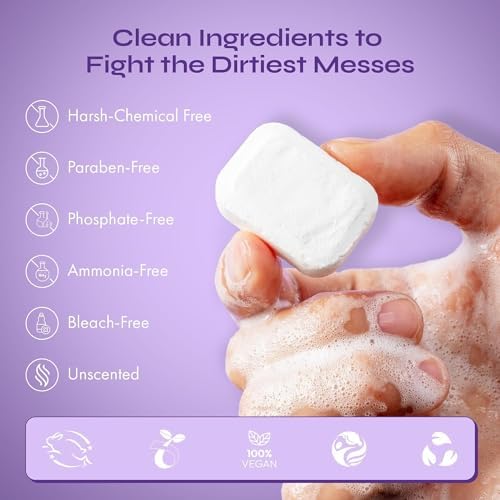 PLASTIC-FREE & ECO-FRIENDLY FORMULA: Our dishwasher detergent tablets offer a sustainable alternative to traditional options. Tough on stains yet gentle on the environment, these 100% plastic-free tablets eliminate the need for plastic film (PVA) commonly found in conventional pods.