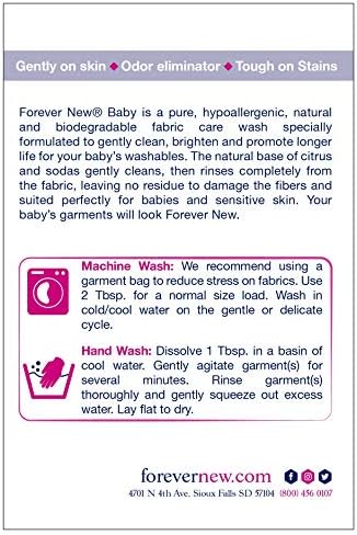 Introduce your little one, to all the best in laundry. Forever New Baby is made and quality tested to ensure that only the safest and best ingredients are used. Our hypoallergenic formula works hard to clean your baby’s tough laundry messes, while protecting skin by rinsing free.