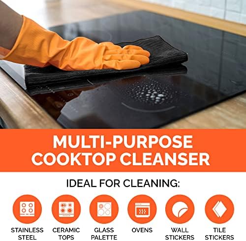 Convenient and Versatile – This multi-surface cleaner isn’t only excellent on cooktops. It also magically keeps your ceramic dishes, cookware, and sinks squeaky clean. Note: Do not use on gold, silver, lacquered, painted, or mirrored surfaces; or on polished stone, such as marble or granite.