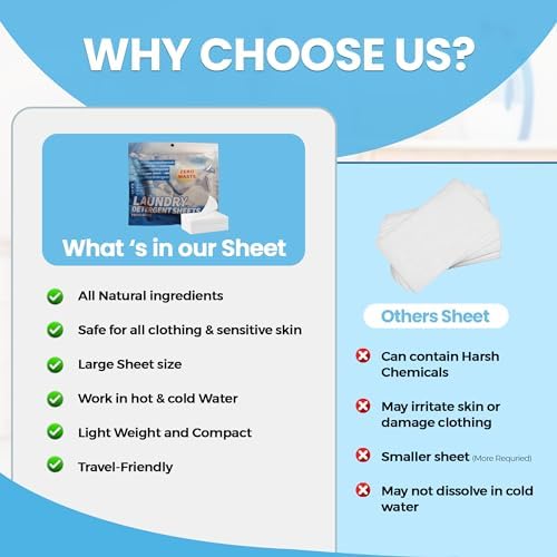Effortless Dissolving: Fast dissolving! No residue! Our washer sheets detergent dissolve swiftly in both hot and cold water, so you enjoy a hassle-free washing experience. Each pack includes 240 sheets that will last for countless washes, all packed in a resealable and recyclable bag to keep the freshness intact.