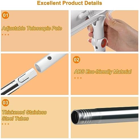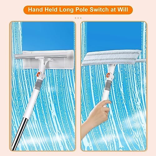 [Long Handle Window Squeegee]: This window washing equipment comes with a 3-section retractable pole with a total length of 52.95 inches. Simply attach the safety clasp, no need to rotate, enough length to clean high windows without extra ladder or stool, safe and convenient